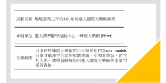 場域實務工作坊2.0_如何進入國際大藥廠產業(暑期開課)